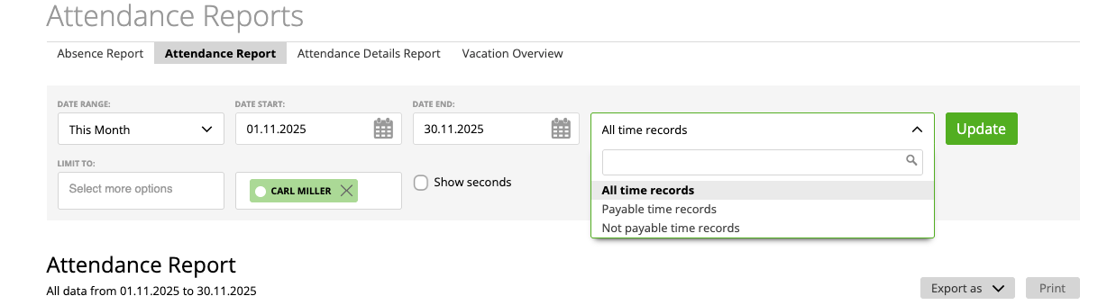 In the Attendance Report, you will get a detailed overview of your team-members/staff’ attendance.