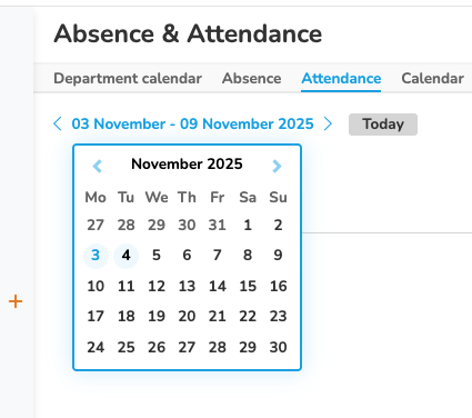 Switch to other weeks by either use the arrow controls besides the time period, or click on the time period to open the date picker. if click on today you get to the current week.