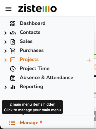 If Main Menu Items are hidden, you see a not at the bottom of the menu